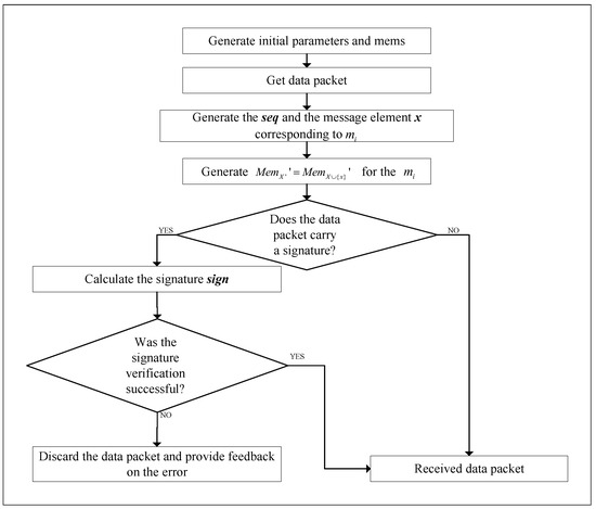 Step 1: The initial parameters and are generated according to the in the memory function. If synchronization is needed, the same memory function can be negotiated with the sender. If signature authentication is required, negotiate the signature interval with the sender;