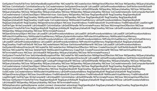 Partial malicious API call sequences.