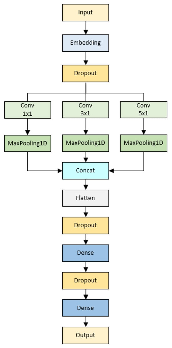 - Training model: The detailed structure of the TextCNN model is shown in Figure 4.