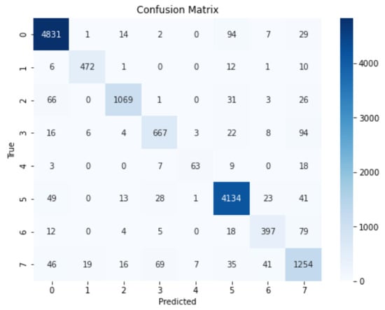 The confusion matrix of the TextCNN model (1, 3, 5) is shown in Figure 6.