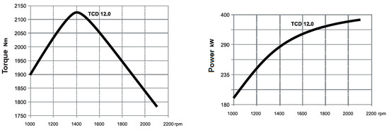 Power and torque functions of diesel engine DEUTZ TCD 12.0 V6 [39].