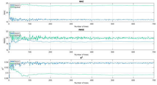 In this paper, a model aggregation approach, known as the ensemble approach, was used with a focus on two ensemble methods—bootstrap aggregation (bagging) and least-square boosting (boosting). Both of these types of algorithms are based on the concept of combining multiple weak models to produce a single strong result. A comparison of model aggregation methods for regression is given in [31]. Starting from works [32,33], these methods have gained popularity in different domains [34,35].