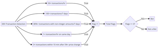 Flowchart of methodology for MEV-bot identification in DEX transactions.