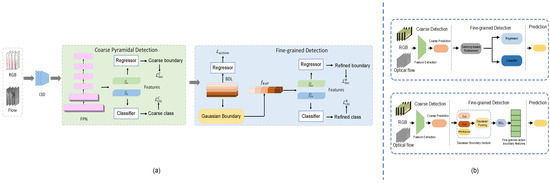 Coarse pyramidal detection module. To address the spatial–temporal dimensions of video data comprehensively, we employ a feature pyramid network equipped with various temporal convolutions. This module is pivotal in generating initial action proposals by amalgamating information across multiple layers, thereby facilitating a multi-scale understanding of potential action instances.