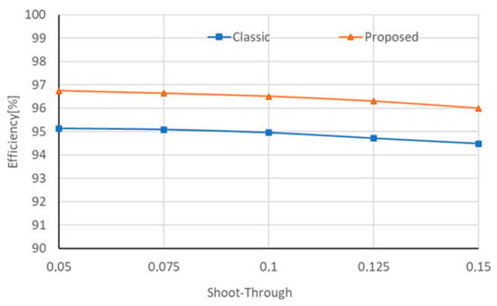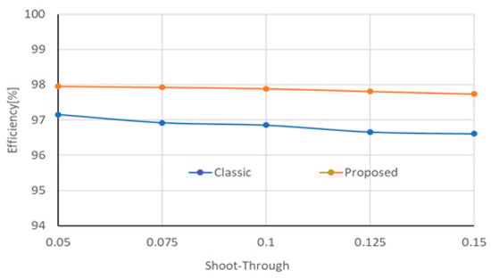 As pointed out, the effect of the suggested modulation strategy on the converter efficiency is another crucial factor. The converter efficiency was calculated through additional simulation tests considering the existing and newly proposed modulation strategies. Figure 18 shows the efficiency of the converter as a function of the shoot-through duty cycle. This figure suggests that the converter efficiency increases by 1%, showing the real value and usefulness of the newly proposed modulation strategy.