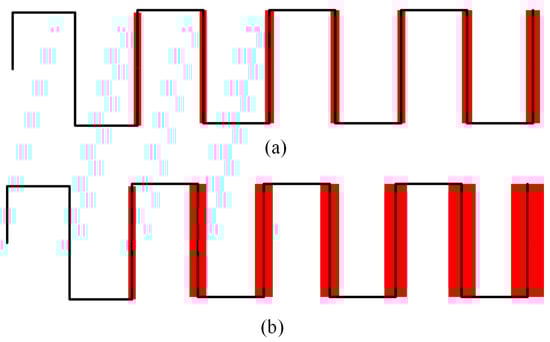 Firstly, let . If r = 0, the period value of the control signal is exactly a multiple of the period value of the transition signal . In this case, the edges of the two signals coincide at any moment, meaning that the sampling point is precisely located at the 0–1 transition edge of the periodic signal.