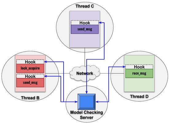 - Guerraoui, R.; Yabandeh, M. Model checking a networked system without the network. In Proceedings of the 8th USENIX Symposium on Networked Systems Design and Implementation, Boston, MA, USA, 30 March–1 April 2011; p. 225. [Google Scholar]