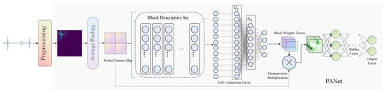 Our heart sound signal classification framework features the innovative Partition Attention Network (PANet), a key development that significantly elevates the model’s proficiency in isolating and analyzing critical features of heart sound signals. Central to this enhancement is the Partition Attention Module, a sophisticated mechanism designed to meticulously partition the input feature map, thereby facilitating a more granular analysis of the acoustic signals. Figure 4 provides a detailed visual representation of the nuanced operations within the Partition Attention Module, beginning with a bispectrum as the initial input. This bispectrum is processed through a Partition Mechanism, segmenting the signal into distinct blocks, which are subsequently streamlined via an Average Pooling layer into a pooled feature map.This streamlined process paves the way for Global Feature Vector Extraction, where a Block Descriptors Set is formulated, encapsulating the essential traits of the signal. The journey of data transformation continues with a Dimensional Transformation, preparing the data for the subsequent stages of processing. A critical phase follows, where a Weight Allocation layer assigns a vector of block weights, ingeniously designed to magnify the significant features within the heart sound signals through an element-wise multiplication with the initial blocks. This methodical enhancement of pivotal features underscores the advanced capability of PANet in accentuating crucial patterns within the heart sound signals, thereby underlining the framework’s enhanced effectiveness in the precise classification of these signals.
