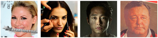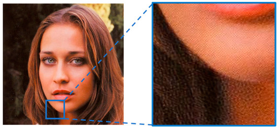 While preparing the images, it was also observed that some photos exhibited face occlusion or poor lighting conditions, as depicted in Figure 9. Using these photos as real images could potentially affect the accuracy of the discrimination judgments between real and fake images during the training process. Consequently, the training effectiveness of the generative model may be constrained, as the feedback of the discriminator is essential for guiding the learning process of the generator. These flawed photos were excluded from the self-built dataset in this study. In addition, it was observed that many photos appeared clear at first glance, but upon magnification, the noise became apparent, as illustrated in Figure 10. This situation could potentially lead the generative model to extract unnecessary features from the noisy images, ultimately degrading the quality of the generated output. Therefore, it is imperative to meticulously examine each photo by zooming in to check for noise and optimize the image quality of the dataset as much as possible. In CelebA-HQ, the majority of the images are of American celebrities. The dataset may likely be skewed towards individuals with lighter skin tones. Gathering a diverse set of images representing different skin tones can indeed be a challenging task. Combining multiple datasets with different color tones can help overcome the limitations in using a single source. Also, data augmentation techniques could be helpful for artificially increasing the diversity of the dataset. In this work, a total of 224 images were prepared for each of the four following datasets: Pale White, Light Brown, Dark Brown, and Deep Dark Brown. After image augmentation, 1792 images were prepared for the consequent model training.