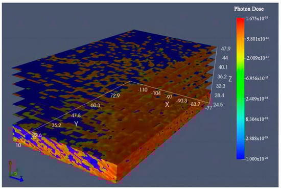 The following data were collected in Super MC. This paper utilizes Super MC [24] (the neutron transport design and safety evaluation software system developed by the Phoenix Team at the Institute of Nuclear Safety Technology, Chinese Academy of Sciences) particle transport computational simulation software to design anti-radiation hardening shielding technology. Figure 6, drawn using Origin, illustrated the dose distribution in the control box. The cumulative dose is significantly higher on the side of the control box closer to the radioactive source compared to the other side. The sensitive components such as transformers, signal receivers, etc., are positioned in the middle to minimize exposure to radiation from the edges. Pb and W are used as shielding materials against ionizing radiation, and the control system is placed behind the robot in combination with factors such as the design margin and allowable weight gain, so as to optimize the robot’s weight distribution and maintain overall balance.