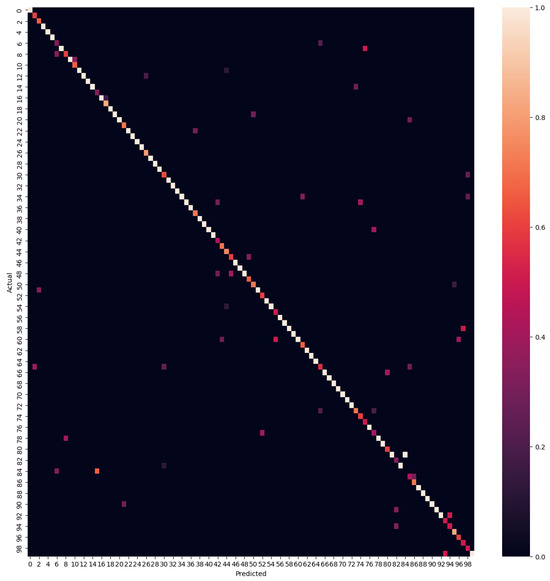 Our model showed good performance across almost the whole dataset; however, it was not able to predict sign classes ‘full’, ‘soon’, ‘thin’, ‘Thursday’, ‘tell’, ‘pizza’, and ‘why’. The sign class ‘bar’ was misclassified with class ‘theory’ and ‘brother’. The irregularity of spatial and temporal features caused by similarity in the movement of gestures can be the reason for this. After analyzing the dataset, we found that different signers have performed the same sign class differently, which led our model to result in some wrong predictions.