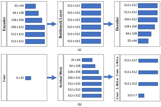 The CycleGAN [4] model contains two mapping functions, G : X → Y and F : Y → X, and the associated adversarial discriminators DY and . encourages G to translate X into outputs indistinguishable from domain Y, and vice versa for and F. To further regularize the mappings, two cycle consistency losses were introduced to capture the intuition that if we translate from one domain to the other and back again, we should arrive at where we started. These two cycle consistency losses are as follows: (a) forward cycle consistency loss: x → → ≈ x; (b) backward cycle consistency loss: y → → ≈ y.