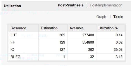 Compared with the previous code generator, the code generator proposed in this paper features a more sophisticated hardware structure. It supports various GNSS signal spread-spectrum codes, including IRNSS IZ4, QZSS L6, and others, based on an LFSR structure. Additionally, it has the capability to generate multiple sets of spread-spectrum codes in parallel, such as simultaneous generation of L5 signal data and pilot channel spread-spectrum codes, or the simultaneous generation of five groups of L1C/A signal spread-spectrum codes and other configurable modes. Table 4 provides a comparison between the number of supported spread-spectrum codes by existing universal code generators and the proposed universal code generator in this paper. The results demonstrate a significant improvement in the compatibility of the proposed scheme. Figure 13 displays the comprehensive resource utilization of FPGA implementation.