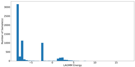where , , and are the mixture probability, mean, and covariance for component k in the GMM. The sample energy can be estimated by Equation (10):