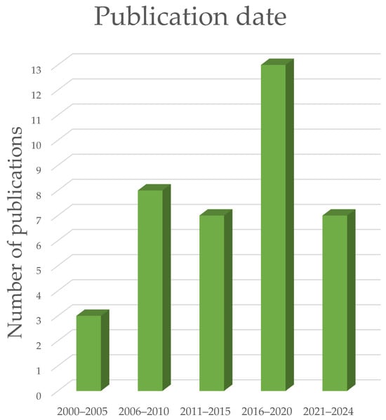 The last stage of the review of scientific publications was to conduct an analysis based on the characteristics of the literature such as the time of publication, content of the literature, and its life cycle; in the following subsections, an analysis of the individual categories is presented. In addition, during the search for publications, a database of all publications that referred to depanelization methods or PCB diagnostic methods was created. This database was created in Microsoft Excel (version 2402), which made it easier to filter sources and make charts.