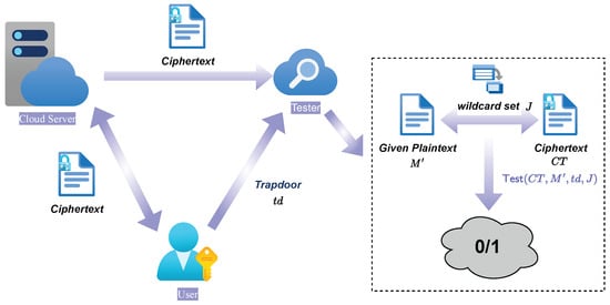 - Tester: After being authorized, this entity can choose a wildcard set J, and conduct an equality test on a ciphertext and a given message.