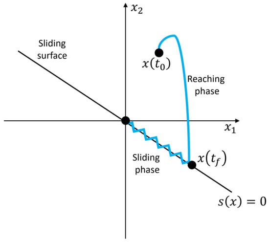 SMC is a model based nonlinear control technique used to drive the system states onto a defined sliding surface, where they must be maintained. This sliding surface is defined in the state space and typically consists of a hyperplane or manifold, as can be observed in Figure 4. In HESSs, the SMC can serve to regulate the operation of the different ESS devices, to ensure the stability, efficiency, and optimal utilization of these resources. Some of these desired operation conditions consist of the state of charge (SOC), power flow distribution and system frequency or voltage [55].