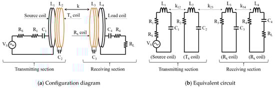 Mutual inductances exist in coils that are not adjacent to each other, i.e., M13, M14, and M24; however, they are not considered in wireless power transmission because the distance and structural effects are insignificant [15].