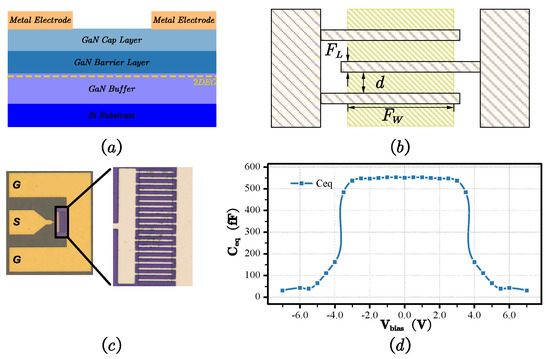 - San Chu, C.; Zhou, Y.; Chen, K.J.; Lau, K.M. Q-Factor Characterization of RF GaN-Based Metal-Semiconductor-Metal Planar Interdigitated Varactor. IEEE Electron Device Lett. 2005, 26, 432–434. [Google Scholar] [CrossRef]