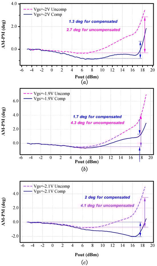 - Vigilante, M.; Reynaert, P. A Wideband Class-AB Power Amplifier With 29–57-GHz AM–PM Compensation in 0.9-V 28-Nm Bulk CMOS. IEEE J. Solid-State Circuits 2018, 53, 1288–1301. [Google Scholar] [CrossRef]