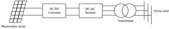 Photovoltaic Generator (PVG) is a device that converts solar light energy directly into electrical energy, and its basic principle is the photoelectric effect. The structure of a photovoltaic grid-connected system mainly includes photovoltaic panel, maximum power point tracking (MPPT) controller, DC/DC converter and inverter. The realization process is that the sun shines on the photovoltaic panel, the photovoltaic cell in the panel absorbs the light energy, generates direct current, and then the direct current is boosted by the DC/DC converter as the DC power supply of the inverter, in this process, to achieve the maximum power point tracking of the photovoltaic cell, and then converted into alternating current by the inverter to the power grid. The grid-connected structure of photovoltaic power generation is shown in Figure 1: