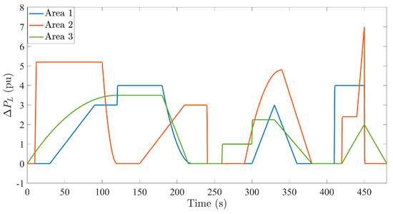Load disturbance in each control area is shown in Figure 10.