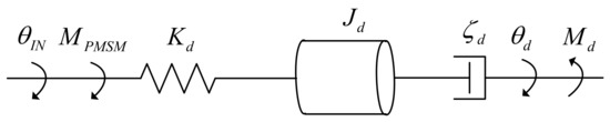 Among them, and are, respectively, the rotation angle of the PMSM and the torque transmitted to the mechanical transmission mechanism; represents the equivalent torsional stiffness of the roller screw; represents the equivalent moment of inertia; represents the damping coefficient; represents the angular displacement of the ball screw obtained after the load-displacement distance is converted; and is the resistance of the roller screw. According to the above model, the equations of motion and torque of the mechanical transmission system of the electromechanical actuation actuator can be obtained as follows: