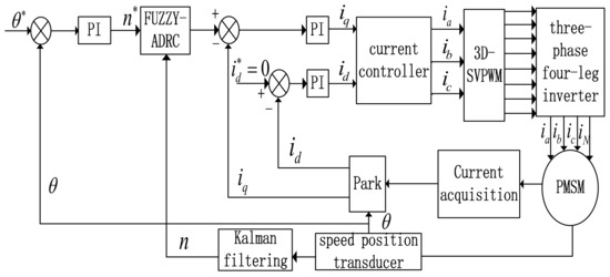 In order to meet the necessities of steady and protected operation of a permanent magnet synchronous motor (PMSM) in electromechanical pressure gadget aviation beneath complicated working conditions, a three-phase four-arm inverter fuzzy self-disturbance suppression management (Fuzzy-ADRC) approach for PMSM is proposed to suppress the motor torque pulsation beneath complicated working conditions. Firstly, the defects of the common inverter are analyzed, the three-phase four-bridge inverter is changed via the standard three-phase three-bridge inverter, and the present-day harmonic suppression’s overall performance of the three-phase four-bridge inverter is modeled, analyzed, and verified. Secondly, the ADRC and fuzzy management approach is analyzed, the Kalman filter is delivered into the motor pace loop management to enhance the overall performance of ADRC, and then the fuzzy manipulate and ADRC are blended to similarly enhance the torque ripple suppression’s overall performance of the everlasting magnet synchronous motor. Finally, the proposed three-phase four-arm inverter and fuzzy-ADRC approach are combined, and contrasted with the normal three-phase three-arm inverter and ADRC method. The simulation consequences exhibit that the proposed manipulation technique can efficiently suppress the torque ripple of everlasting magnet synchronous motor and has robust reliability.