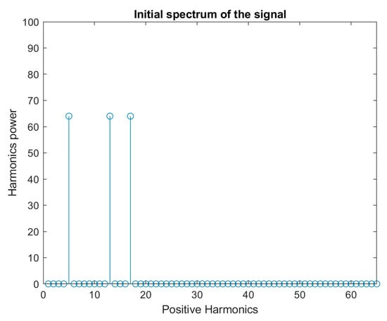 The three harmonics power that appear at 4th, 12th and 16th positions (dc is at position 1). From the power spectrum it is not possible to distinguish which is the coupled harmonic.