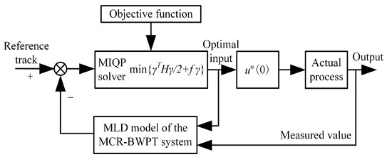 The optimal input variable sequence of the system is defined as utT−1 = {u(0), u(1), …, u(T − 1)}, where the MLD model of the MCR-BWPT system as well as constraints of the system’s state variables are the constraints of the model predictive control, and, therefore, the H-MPC problem of the MCR-BWPT system can be transformed into