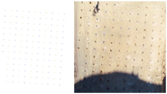Drilling pattern “as designed” (left) versus “as drilled” (right).