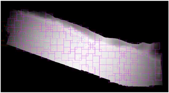 The sliding window algorithm (Figure 13) was utilized in two different stages. The first application of the sliding window was to generate random negative sample patches. The second application of the sliding window was to divide the orthomosaic and DEM into small patches for later classification. Each of these patches was then categorized as positive or negative samples. In the case of random negative samples, the patch dimension was the average positive sample patch dimension per dataset. In the case of the sliding window to generate classification patches, the patch dimension was 300 × 300 pixels with steps of 100 pixels horizontally and vertically.
