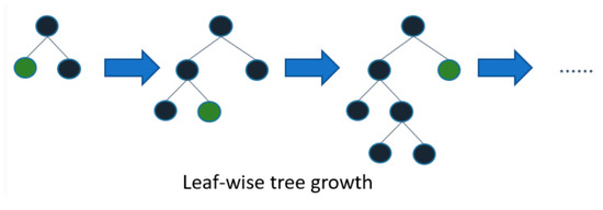 LightGBM divides the leaf with the largest split gain, and feature scores are computed by summing split operation gains or segmentation passes. Innovative algorithms such as exclusive feature bundling (EFB) and gradient-based one-side sampling (GOSS) are employed in LightGBM. GOSS targets poorly trained samples while preserving baseline data dispersion, enhancing model efficiency. On the other hand, EFB minimizes feature information while retaining original feature information, thereby improving algorithm efficiency [42]. Consequently, LightGBM enhances memory conservation and accelerates training.