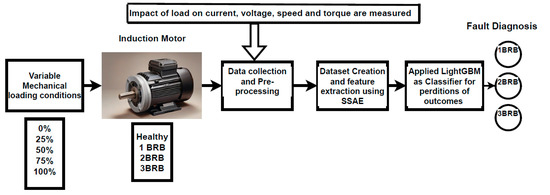 - An enhanced methodology is implemented to accurately identify and classify the number of broken rotor bars (BRBs) in inverter-fed induction motors across various loading conditions by integrating sparse stacked autoencoders with LightGBM (SSAE–LightGBM) using stratified group k-fold cross-validation.