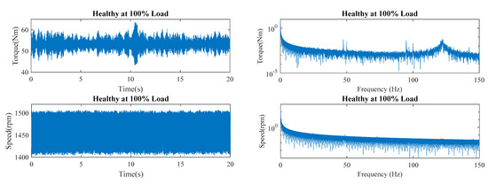 Detection of damaged rotor bars using vibration signals, acoustics, current, magnetic flux, voltage, torque, and speed are prevalent in the literature [34]. A common approach in predictive maintenance involves segregating fundamental harmonics from faulty harmonics through spectral analysis [35]. In our study, we employed current, voltage, speed, and torque harmonics to train the proposed algorithm. The following are the fundamental equations that wereused for the pre-analysis of the collected data.