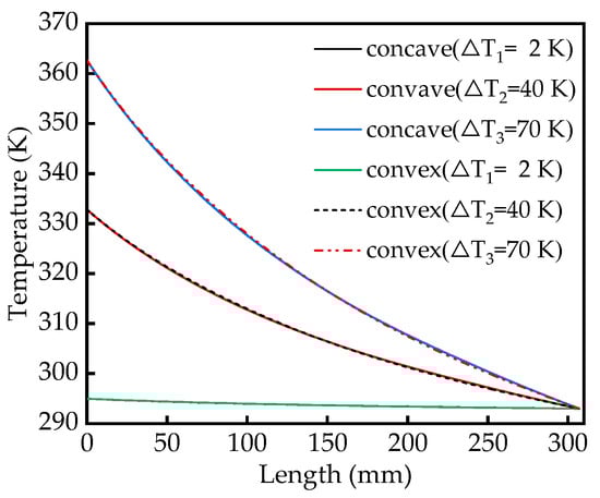 Steady-state temperature along the surface of the spacer under different temperature fields.