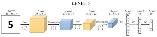 The neural network model used in this work is LeNet-5 and the network structure is shown in Figure 1. We used the Modified National Institute of Standards and Technology (MNIST) dataset, which is composed of hand-written digits, as the input for the LeNet-5 CNN test. The MNIST is commonly used for training various image processing systems or testing in the fields of machine learning.