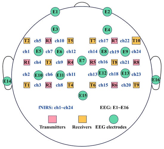 Layout of the transmitter-receiver-electrode brain in the acquisition cap of the fNIRS-EEG bimodal system.