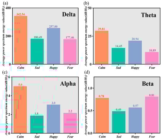 In this study, Pearson correlation analysis [39] was performed to explore the relationship between the power spectral energy values of each EEG frequency band and the HbO features, including mean, peak, slope, variance, and kurtosis, in 30 subjects under four emotional states. The aim of this was to examine the potential relationships between fNIRS and EEG during emotion recognition.