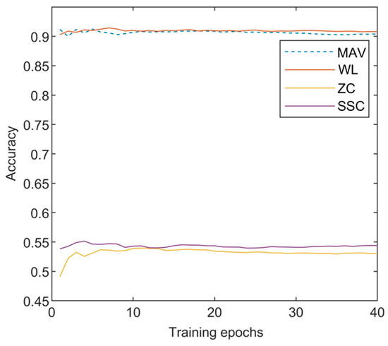 - Phinyomark, A.; Phukpattaranont, P.; Limsakul, C. Feature reduction and selection for EMG signal classification. Expert Syst. Appl. 2012, 39, 7420–7431. [Google Scholar] [CrossRef]