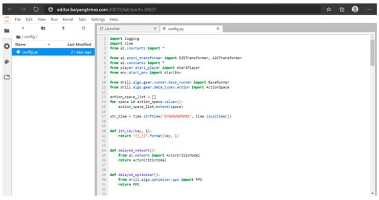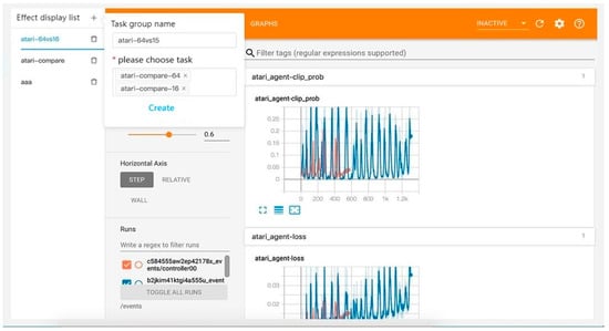 After completing the development of the intelligent agent, during the subsequent parallel sampling and updating of the intelligent agent model in the simulation environment (see details in the following text), based on the generated data, the platform manages the WEB interface components to help users optimize the intelligent agent through visual effects display, training logs, and other means (Figure 5).
