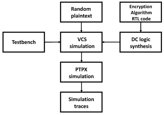 • First, we set the desired random plaintext for the encryption algorithm and ran the DC software, which read the Synopsys technology library files and RTL code of the encryption algorithm. The software performed logic synthesis to generate the gate-level netlist file;