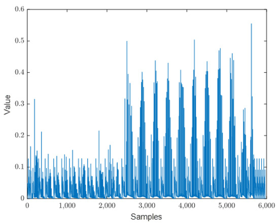 • Finally, using MATLAB Version 2020 software, we read the power accumulation file and parsed it into the desired simulation waveform data. The resulting power leakage waveform of the complete AES encryption process, obtained through the above steps, is shown in Figure 7.