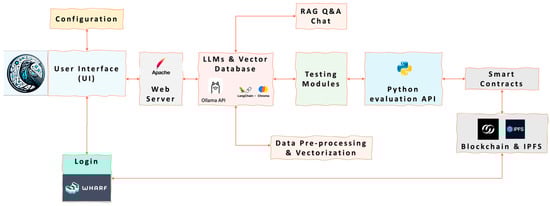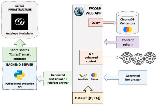 - The finalized dataset is uploaded to the PaSSER App, initiating an automated sequence of response generation for each query within the target domain. Following that, each generated response is forwarded to a dedicated Python backend script. This script is tasked with assessing the responses based on predefined metrics and comparing them to the established reference answers. The outcomes of this evaluation are then stored on the blockchain, ensuring a transparent and immutable ledger of the model’s performance metrics.
