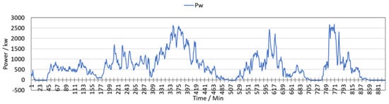 In order to verify the effectiveness of the proposed strategy, for this study, we used the 3.3 MW wind power data of a wind farm. The recording interval is 1 min and the sampling time is 900 min. The simulation experiment was carried out in MATLAB(R2020a), and the power curve is shown in Figure 8.