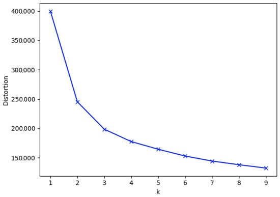 The elbow method [] is a widely used technique in the field of cluster analysis, particularly in unsupervised machine learning, to determine the number of clusters revealed in a given dataset []. In practice, selecting the exact elbow point can be subjective, as it may not always be as clear-cut as a distinct elbow shape. However, the elbow method offers a valuable rule of thumb for determining the number of clusters that align with the data’s underlying structure and the analysis objectives.