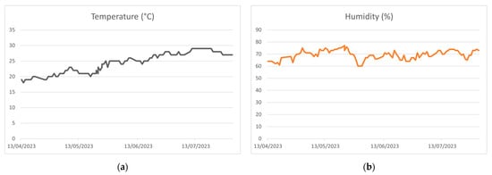 These optimal values are crucial for maximizing the yield and quality of tomato plants, as we aimed to emulate the growth period of one year []. Figure 16 illustrates the trends in air temperature and humidity.