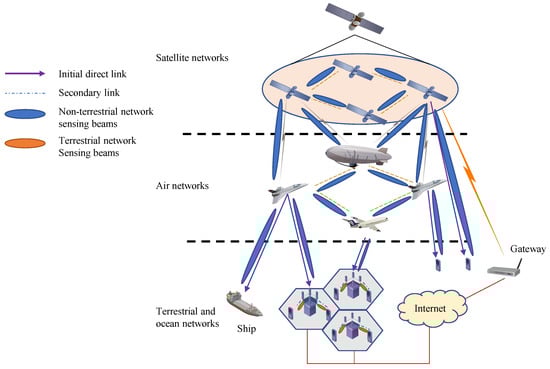 There are many countries that aspire to achieve the construction of ISTNs as a significant objective. As early as the beginning of the twentieth century, the United States Department of Defense proposed the idea of building an integrated information network between the sky and the earth. It utilizes coordinated LEO satellites for efficient multicast communications, aiming to maximize user communication and provide a secure network environment for a comprehensive battlefield []. Europe and other related countries have also launched multiple ISTN projects, including CoRaSat, SANSA, SaT5G, etc. []. In addition, China has launched a comprehensive project of an integrated information network of space and ground in Science and Technology Innovation 2030 to carry out technological research and development of ISTNs.
