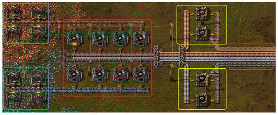- Factory. Factorio Wiki—Main Bus Design. 2020. Available online: https://wiki.factorio.com/Tutorial:Main_bus (accessed on 3 March 2024).