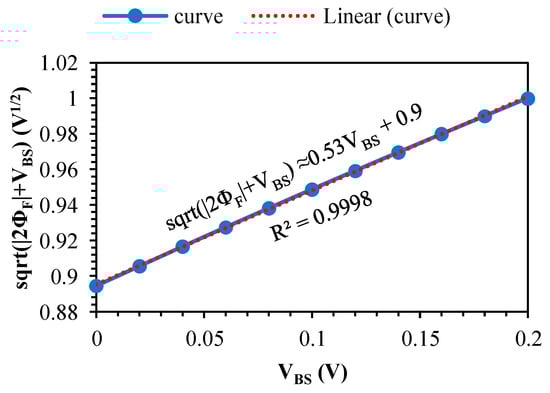 |VBS| in this design is considered around 0 to 200 mV and 2ΦF ≈ 0.8 V. According to Figure 5, the C1 and C2 coefficients are approximately 0.53 and 0.9, respectively. By placing (11) into (10), and . With these coefficients, the threshold voltage is expressed by the following equation.